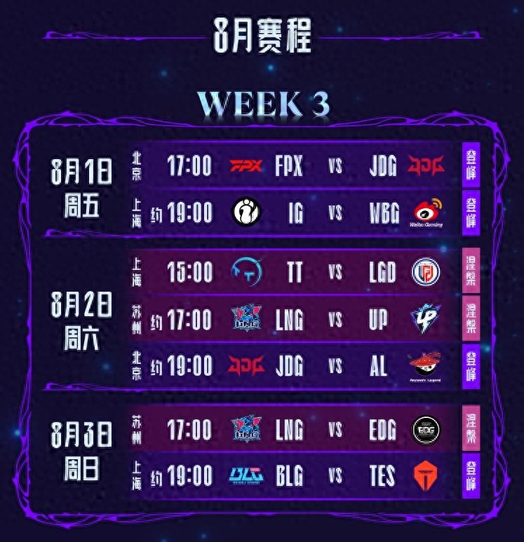 8月3日的比赛,将由LNG对阵EDG,以及焦点之战BLG大战TES带给大家。他们谁更厉害呢,赛场来告诉你!