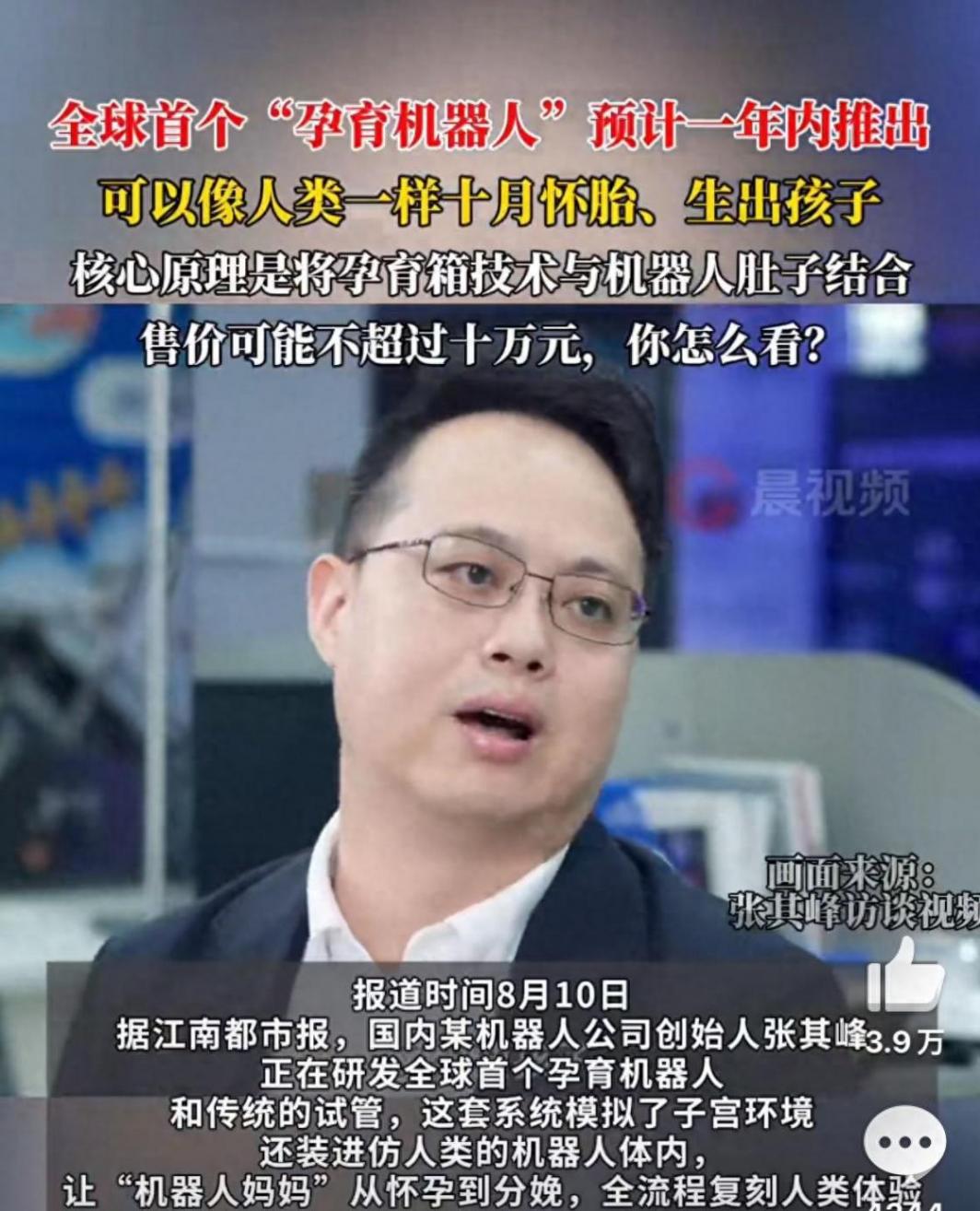 全球首个孕育机器人预计一年内面世的消息,引发了广泛关注。据公开信息,该设备通过人造子宫模拟人类妊娠环境,覆盖从胚胎着床到胎儿发育直至分娩的全过程,定价预计不超过10万元。(8月10日潇湘晨报)